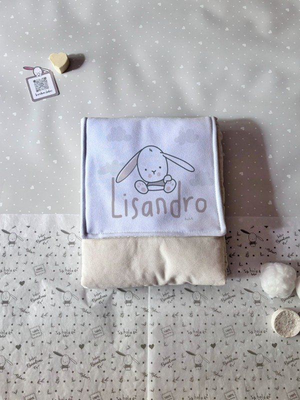Estampa realizada por transfer sobre la solapa exterior del cambiador, personalizada con el nombre del bebé.