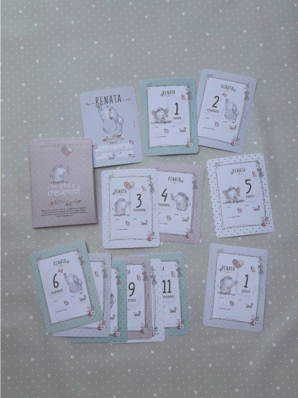 Para tomar una foto del bebé cada vez que cumple un nuevo mes con la tarjeta a su lado o en su mano cuando aprenda a hacerlo y tener el recuerdo de cómo fue creciendo. Con espacio para completar el peso y altura de cada mes.